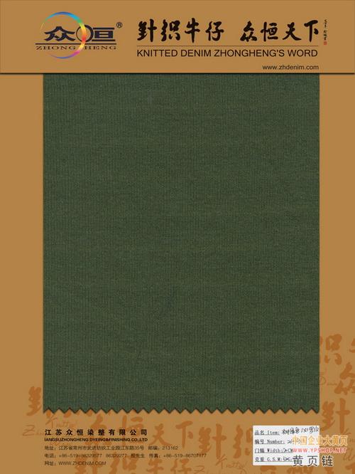 江苏众恒染整有限公司地处纺织业十分发达的江苏常州,交通便捷。占地90多亩,建筑面积3万多平方米,拥有固定资产1.5亿元,现有职工350人。 本公司引进美国莫里森球经染色生产线,配备美国西点分经机、倒筒机、日本圆织机、莫里森后整理生产线等一系列世界顶级针织牛仔生产设备。本公司对针织牛仔的染、织、整理一条龙,具备专业生产规模。年产靛蓝筒纱3000吨,针织牛仔面料5000吨。 针织牛仔纹路细腻清晰,手感柔软舒适,高弹透气,风格多变、品种丰富。公司主要产品有毛圈布、鱼鳞布、卫衣布、汗布、网眼布、彩条布、弹力布、单、双珠地布、单面、双面电脑提花布、等系列,适用于T恤、童装、睡衣、内衣、运动服、休闲服、时装等。 行业的NO.1是我们的追求! 江苏众恒用心打造世界针织牛仔第一品质。